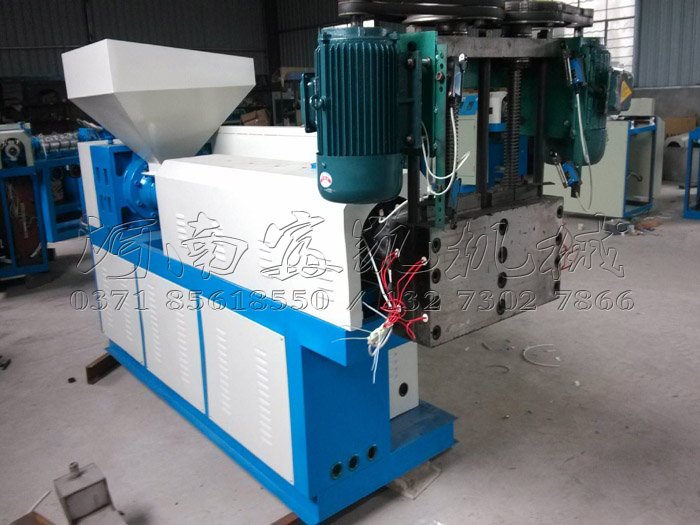 河南富凱機(jī)械再生塑料造粒機(jī)通過(guò)加熱圈將進(jìn)入機(jī)筒內(nèi)的塑料融化后在內(nèi)部螺旋推桿的壓力作用下使融化后的塑料向機(jī)頭磨機(jī)方向流動(dòng),通過(guò)機(jī)頭磨機(jī)的孔徑成型后卸出機(jī)筒,由機(jī)筒流出的母線(xiàn)再經(jīng)過(guò)塑料冷氣槽內(nèi)的水體冷卻后成為具有一定硬度及韌性的塑料母線(xiàn),該母線(xiàn)再經(jīng)過(guò)切粒機(jī)的切粒后直接成為再生塑料顆粒供客戶(hù)銷(xiāo)售。