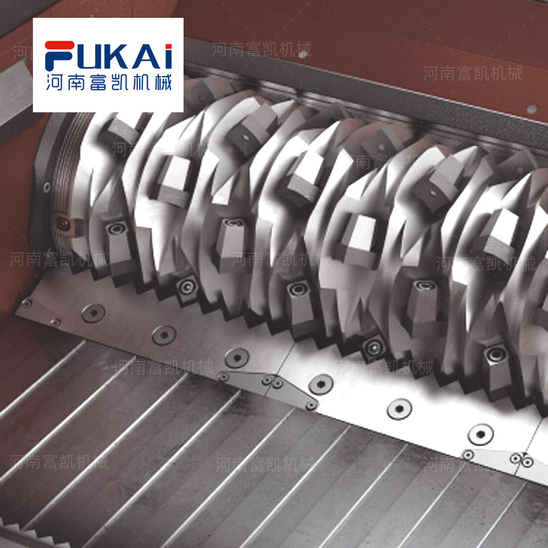 河南富凱橡膠撕碎機在工作原理上廢舊橡膠撕碎機以單軸、雙軸或四軸作為設(shè)備的破碎機構(gòu)結(jié)合定刀形成破碎夾角,通過電機的驅(qū)動在減速機變速后通過軸間夾角的變化和撕碎機刀片的卡位壓力作用將物料壓入軸夾角內(nèi),在軸夾角不斷減小的作用下產(chǎn)生徑向壓力,在徑向壓力的加壓和刀片撕扯的作用下將物料由大塊撕裂變形成小塊顆粒狀,通過橡膠撕碎機底部篩網(wǎng)的篩選作用符合大小的顆粒由撕碎機底部篩網(wǎng)排出不符合大小的顆粒被再次送到軸夾角和定刀之間再次進行破碎加工。