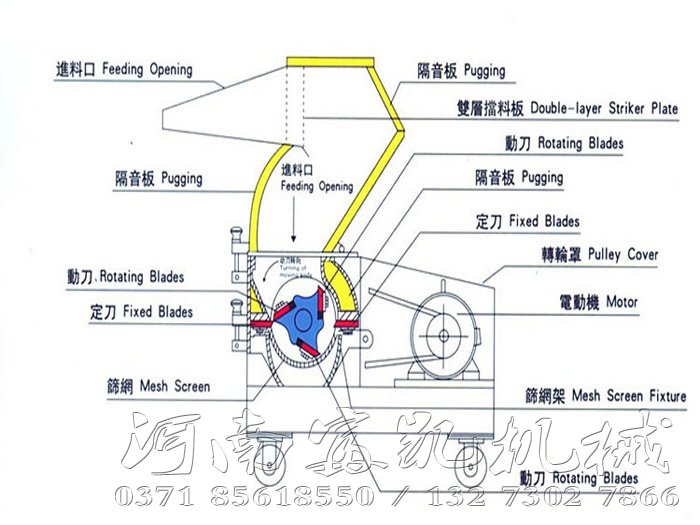 4、刀口采用V型設(shè)計(jì),粉碎時(shí)刀具沖擊力小,電機(jī)工作電流波動(dòng)小。